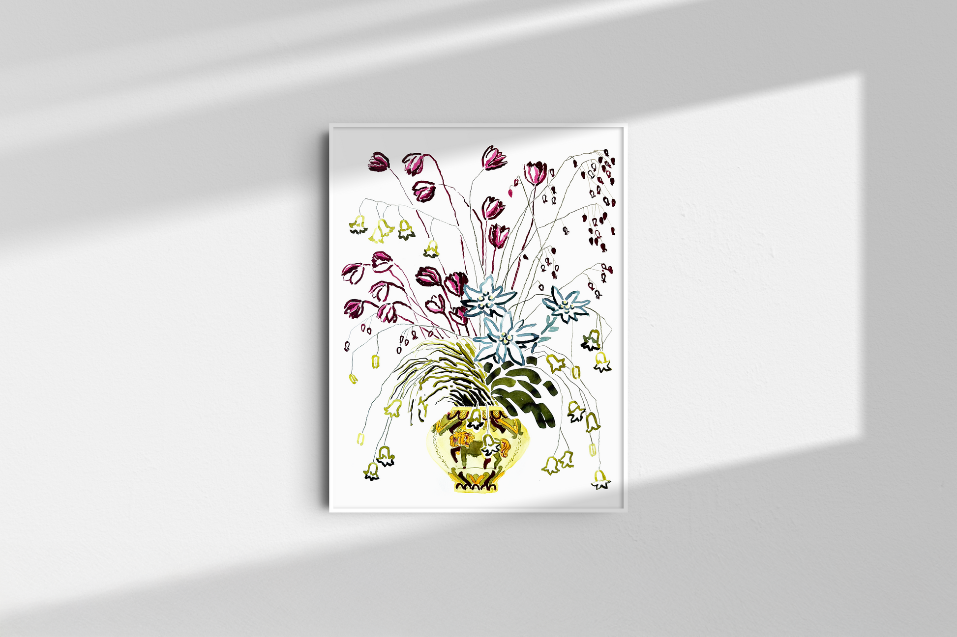 The first flowers that awaken with spring—delicate, yet carrying the hope of warmth and light. This work is about the sensuality and fragility of light and warmth that come after cold times. Like the first spring flowers breaking through the snow, bringing hope. Here, I depicted crocuses, edelweisses, bellflowers, and other flowers that grow in the mountains. The pot they are placed in is decorated in the style of Kosiv ceramics.