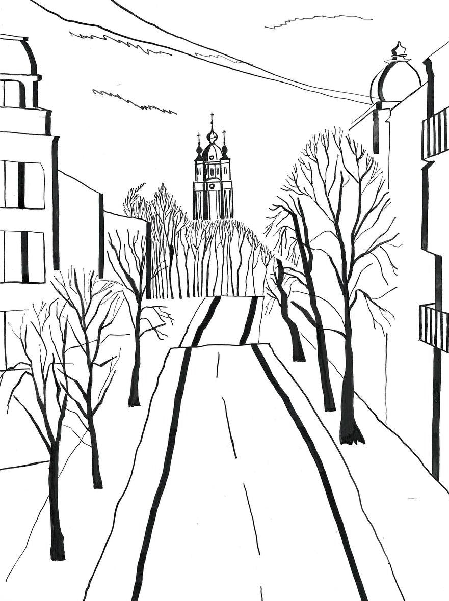 Улюблений куточок міста художниці та місце, де вона живе та творить.